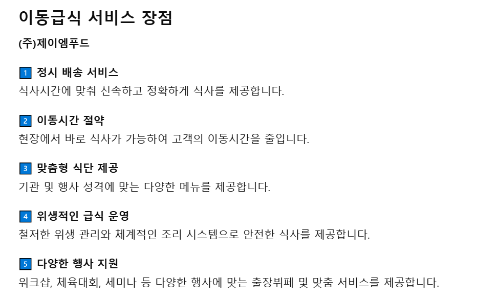 “정성을 담아 준비하고, 신속하게 전달하는 프리미엄 이동급식” 오늘도 (주)제이엠푸드가 함께합니다.